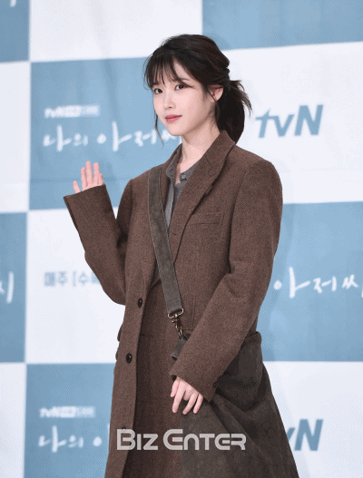 아이유가 11일 오후 서울 영등포구 타임스퀘어 아모리스홀에서 열린 tvN 수목드라마 ‘나의 아저씨’(극본 박해영, 연출 김원석) 기자간담회에 참석해 포토타임 중 플래시 세례에 수줍은 듯 미소를 짓고 있다.