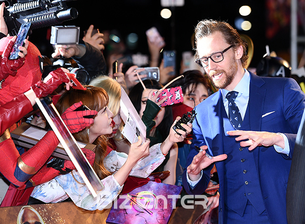 배우 톰 히들스턴이 12일 오후 서울 강남구 코엑스 동측광장에서 열린 영화 영화 ‘어벤져스: 인피니티 워’(감독 안소니 루소, 조 루소 / 이하 ‘어벤져스3’) 내한 레드카펫 행사에 참석하고 있다.