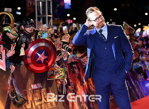 배우 톰 히들스턴이 12일 오후 서울 강남구 코엑스 동측광장에서 열린 영화 영화 ‘어벤져스: 인피니티 워’(감독 안소니 루소, 조 루소 / 이하 ‘어벤져스3’) 내한 레드카펫 행사에 참석해 포즈를 취하고 있다.