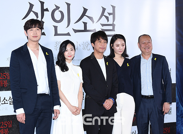 배우 지현우, 이은우, 오만석, 조은지, 김학철이 16일 오후 서울 중구 메가박스 동대문에서 열린 영화 ‘살인소설’(감독 김진묵) 언론시사회에 참석해 포즈를 취하고 있다.