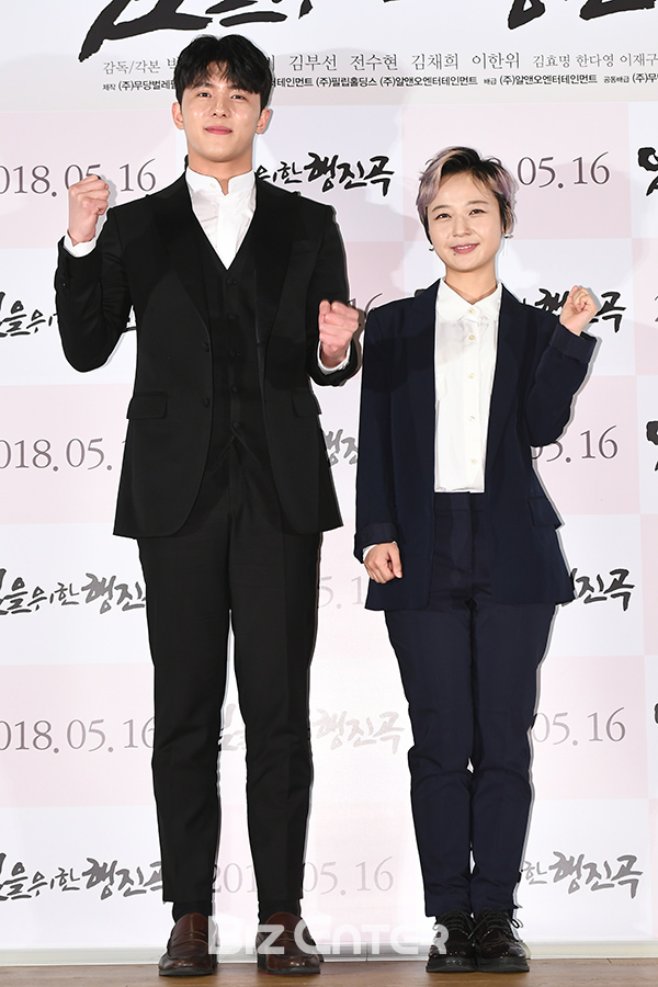 배우 전수현, 김꽃비가 18일 오전 서울 중구 CGV 명동역 씨네라이브러리에서 열린 영화 ‘임을 위한 행진곡’(감독 박기복) 제작보고회에 참석해 포즈를 취하고 있다.