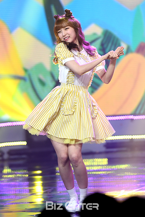 오마이걸 반하나 아린이 18일 오후 경기 고양시 일산MBC드림센터에서 열린 MBC뮤직 ‘쇼! 챔피언’(이하 ‘쇼챔’) 생방송 무대에서 멋진 무대를 선보이고 있다.