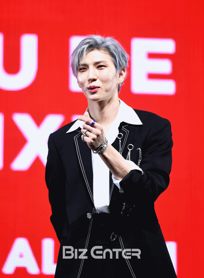 레오가 지난 17일 오후 서울 광진구 예스24 라이브홀에서 열린 빅스 세 번째 정규앨범 ‘오드빅스(EAU DE VIXX)’ 발매 쇼케이스에서 손하트 포즈로 매력을 발산하고 있다.