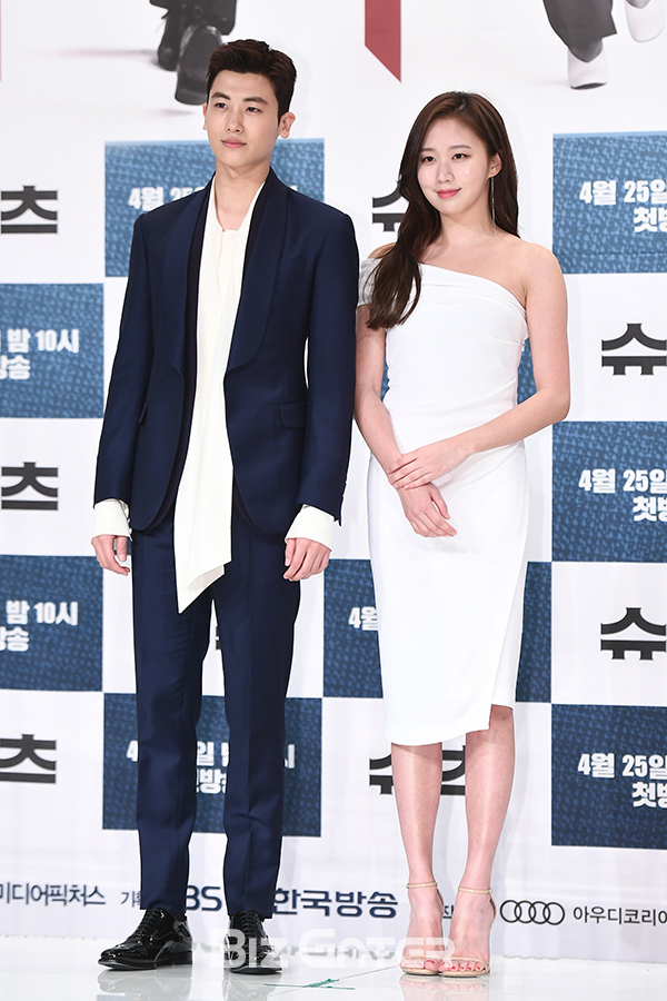 배우 박형식, 고성희가 23일 오후 서울 영등포 타임스퀘어 아모리스홀에서 열린 KBS 2TV 수목드라마 ‘슈츠(Suits)’(극본 김정민, 연출 김진우) 제작발표회에 참석해 포즈를 취하고 있다.