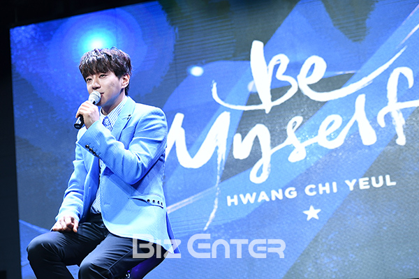 가수 황치열이 24일 오후 서울 마포구 서교동 예스24 무브홀에서 열린 두 번째 미니앨범 '비 마이셀프(Be Myself)’ 발매 쇼케이스에서 질문에 답하고 있다.