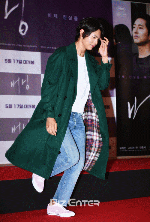 배우 박보검이 지난 14일 오후 서울 용산구 CGV용산아이파크몰에서 열린 영화 ‘버닝’(감독 이창동) VIP시사회에서 포토타임 이후, 청순하게 머리카락을 넘기며 퇴장하고 있다.