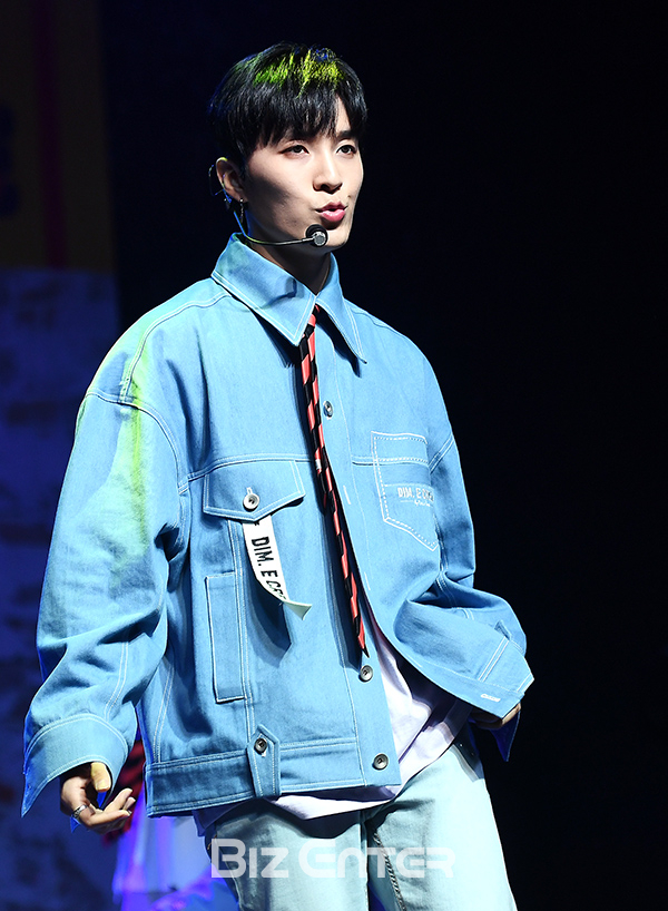 일급비밀 아인이 23일 오후 서울 마포구 서교동 하나투어 브이홀에서 열린 일급비밀(TST) 싱글앨범 ‘러브 스토리(LOVE STORY)’ 발매 쇼케이스에서 무대를 선보이고 있다.