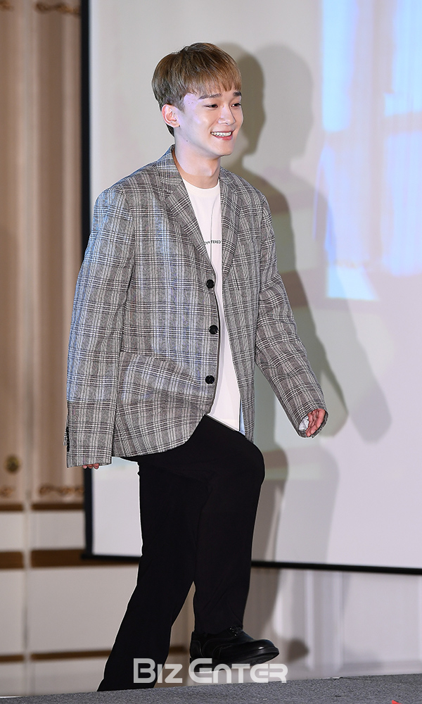 엑소 첸백시(EXO-CBX) 첸이 29일 오후 서울 강남구 임피리얼팰리스호텔에서 열린 옥수수(oksusu) ’엑소의 사다리타고 세계여행 - 첸백시 일본편’(연출 김지선) 제작발표회에 참석하고 있다.