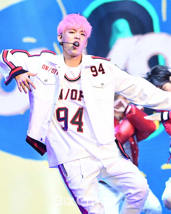 온앤오프 효진이 7일 오전 서울 중구 남대문 메사홀에서 열린 온앤오프 두 번째 미니 앨범 ‘유 컴플리트 미(You Complete Me)’ 발매 쇼케이스에서 무대를 선보이고 있다.