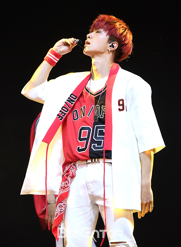온앤오프 와이엇이 7일 오전 서울 중구 남대문 메사홀에서 열린 온앤오프 두 번째 미니 앨범 ‘유 컴플리트 미(You Complete Me)’ 발매 쇼케이스에서 무대를 선보이고 있다.