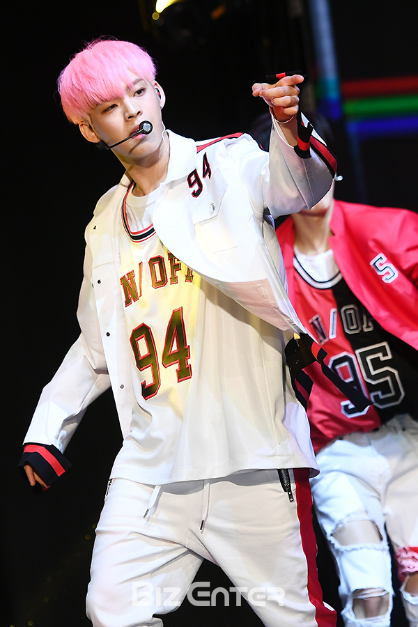 온앤오프 효진이 7일 오전 서울 중구 남대문 메사홀에서 열린 온앤오프 두 번째 미니 앨범 ‘유 컴플리트 미(You Complete Me)’ 발매 쇼케이스에서 무대를 선보이고 있다.