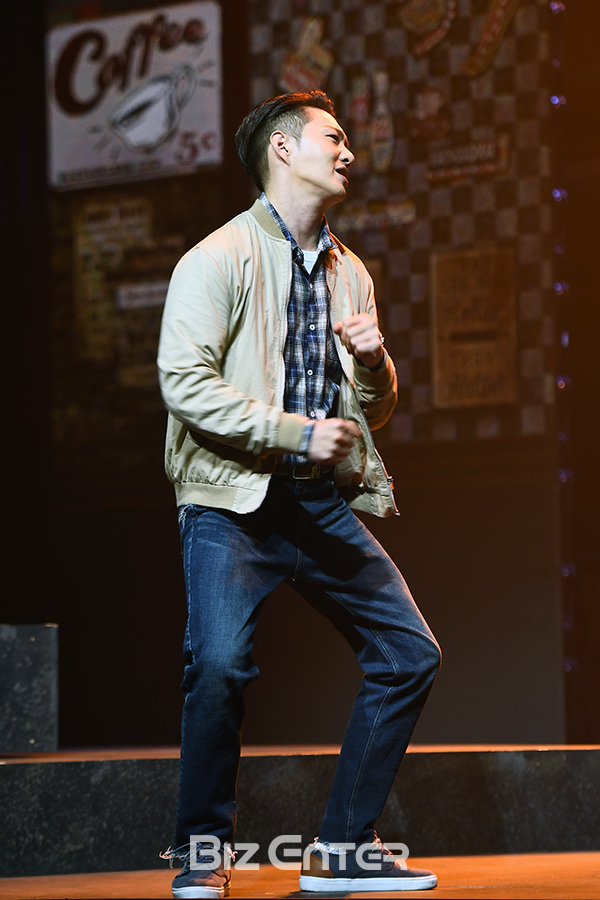 비투비 이창섭이 7일 오후 서울 강남구 광림아트센터 BBCH홀에서 열린 뮤지컬 ‘도그파이트-샌프란시스코에서 하룻밤’(이하 ‘도그파이트’) 프레스콜에서 극 중 한 장면을 선보이고 있다.