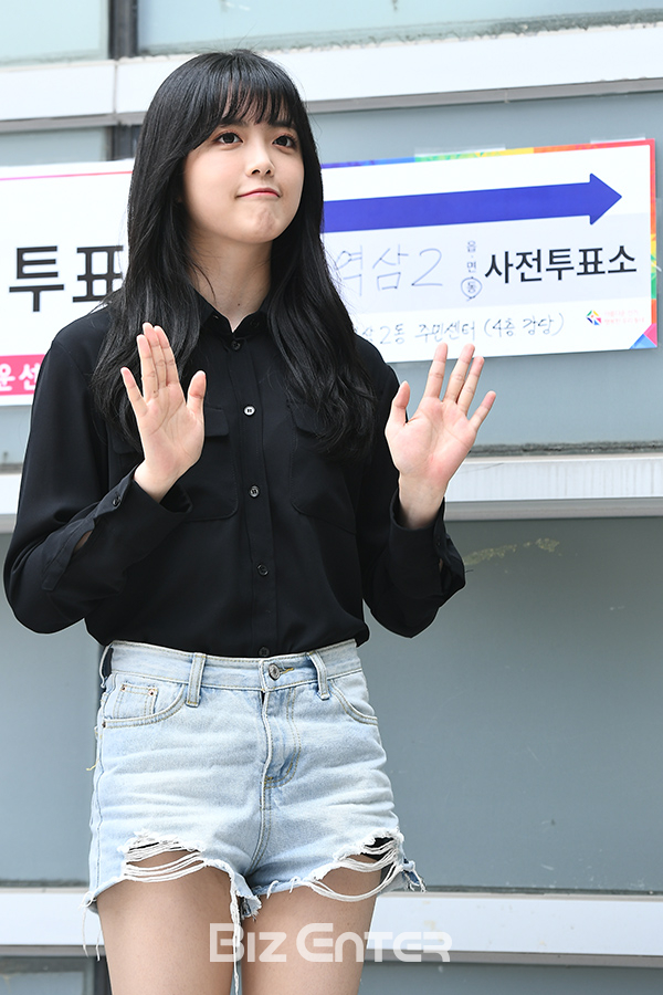 위키미키 지수연이 8일 오전 서울 강남구 역삼2동 주민센터에서 진행된 '제7회 전국동시지방선거' 사전투표에 참여하기 위해 들어서 포즈를 취하고 있다.