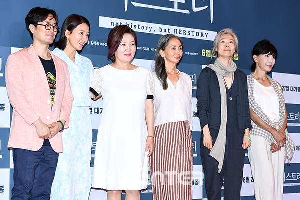 민규동 감독, 배우 김희애, 김해숙, 문숙, 예수정, 이용녀가 14일 오후 서울 강남구 메가박스 코엑스에서 열린 영화 ‘허스토리’(감독 민규동) 셀럽/오피니언 리더 시사회에 참석해 포즈를 취하고 있다.