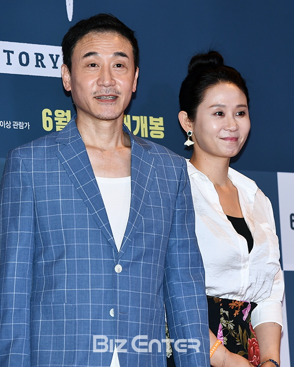 배우 김인우, 김선영이 14일 오후 서울 강남구 메가박스 코엑스에서 열린 영화 ‘허스토리’(감독 민규동) 셀럽/오피니언 리더 시사회에 참석해 포즈를 취하고 있다.