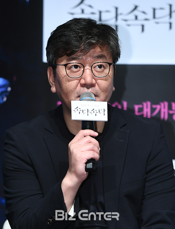 최상훈 감독이 21일 오전 서울 강남구 신사동 압구정CGV에서 열린 영화 ‘속닥속닥’(감독 최상훈) 제작보고회에 참석해 작품을 소개하고 있다.