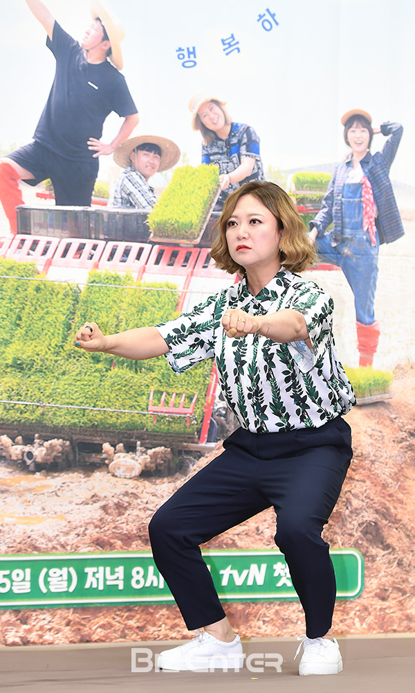 방송인 김숙이 25일 오후 서울 마포구 상암동 스탠포드호텔에서 열린 tvN 새 예능 ‘풀 뜯어먹는 소리’ 제작발표회에 참석해 포즈를 취하고 있다.