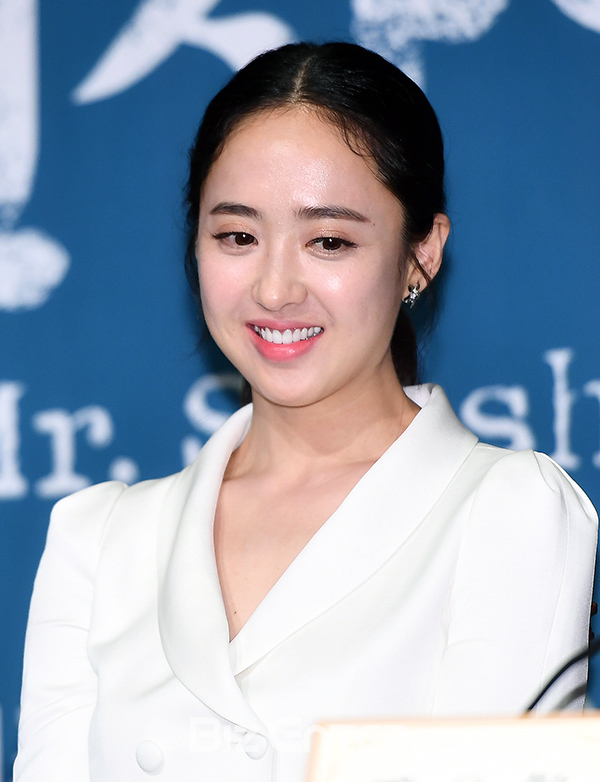 배우 김민정이 26일 오후 서울 강남구 파티오나인에서 열린 tvN 주말드라마 ‘미스터 션샤인’(극본 김은숙, 연출 이응복) 제작발표회에 참석해 질문에 집중하고 있다.