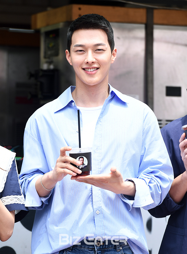 배우 장기용이 27일 오후 서울 마포구 상암동 MBC광장에서 열린 MBC 수목드라마 ‘이리와 안와줘’ 커피차 이벤트에 참석하고 있다.