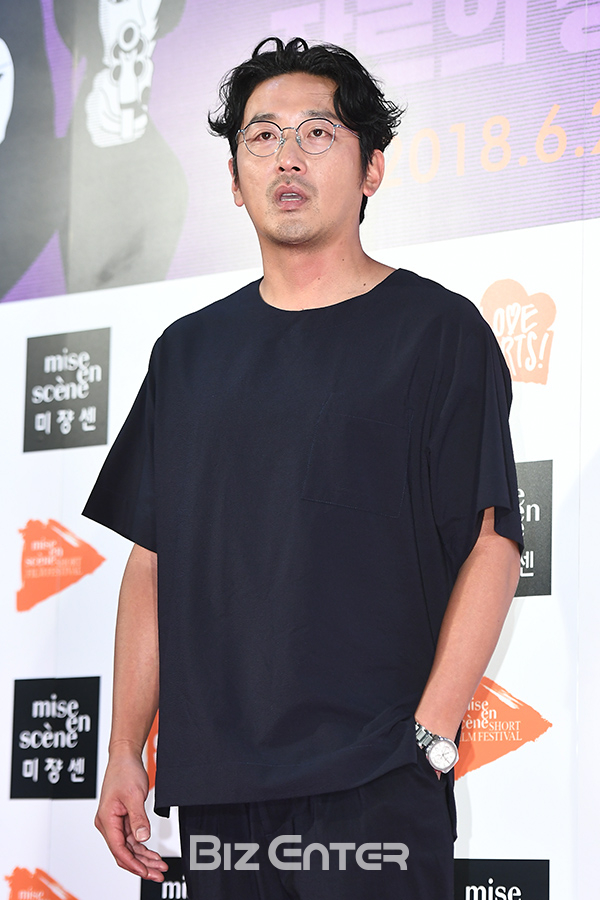 배우 하정우가 28일 오후 서울 용산구 아모레퍼시픽 신본사에서 열린 ‘제17회 미쟝센 단편영화제’ 개막식 행사에 참석해 포즈를 취하고 있다.