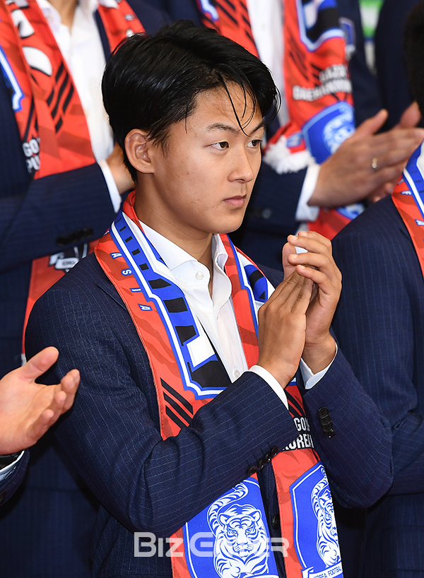 축구 대표팀 이승우 선수가 29일 오후 ‘2018 러시아 월드컵’ 조별리그를 마치고 인천국제공항을 통해 귀국하고 있다.