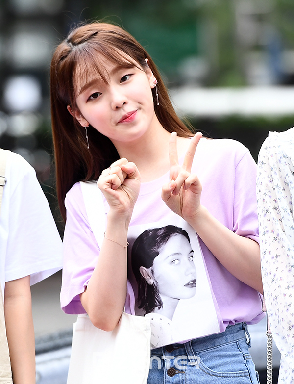 오마이걸 승희가 29일 오전 서울 영등포구 여의도 KBS신관홀에서 열린 KBS 2TV ‘뮤직뱅크’ 20주년 특집 상반기 결산 리허설을 마치고 중간 퇴근을 하고 있다.