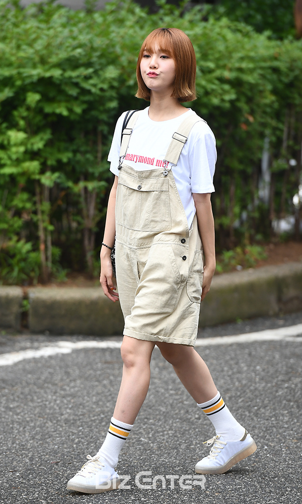 오마이걸 미미가 29일 오전 서울 영등포구 여의도 KBS신관홀에서 열린 KBS 2TV ‘뮤직뱅크’ 20주년 특집 상반기 결산 리허설을 마치고 중간 퇴근을 하고 있다.