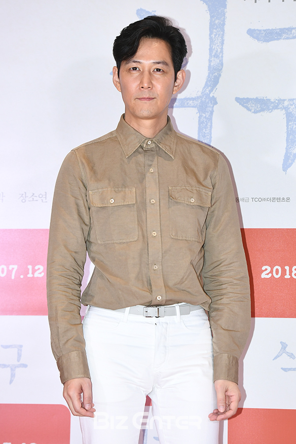 배우 이정재가 9일 오후 서울 송파구 롯데시네마 월드타워점에서 열린 영화 ‘식구’(감독 임영훈) VIP시사회에 참석해 포즈를 취하고 있다.