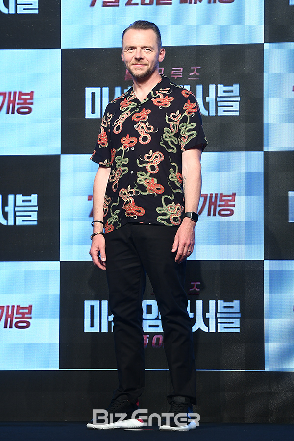 배우 사이먼 페그가 16일 오후 서울 송파구 롯데호텔월드에서 열린 영화 ‘미션 임파서블: 폴아웃’(감독 크리스토퍼 맥쿼리 / 이하 '미션 임파서블6') 내한 기자회견에 참석해 포즈를 취하고 있다.