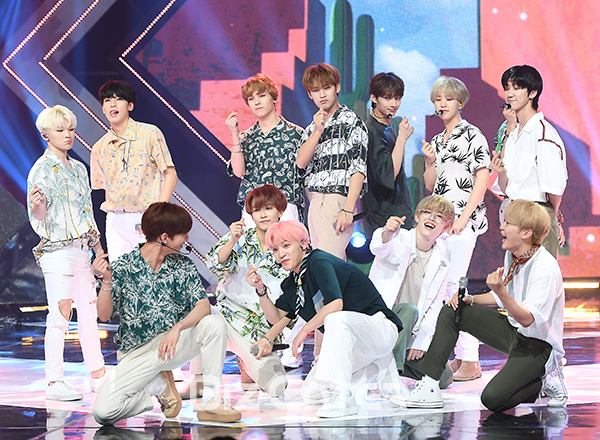 세븐틴이 25일 오후 경기 고양시 일산MBC드림센터에서 열린 MBC뮤직 ‘쇼! 챔피언’(이하 ‘쇼챔’) 생방송에서 화려한 무대를 펼치고 있다.