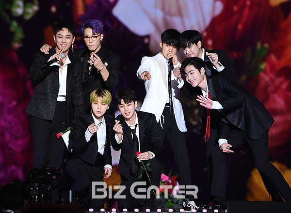 아이콘이 1일 오후 서울 구로구 고척 스카이돔에서 열린 ‘케이스타 2018 코리아 뮤직 페스티벌(KSTAR 2018 Korea Music Festival / 이하 ‘2018 코뮤페’)’ 플라워카펫에 참석해 포즈를 취하고 있다.
