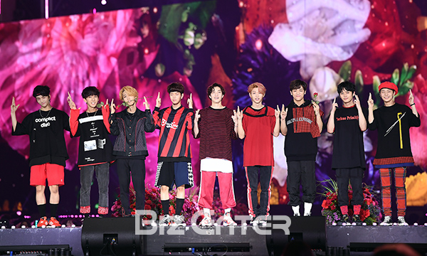 스트레이키즈가 2일 오후 서울 구로구 고척 스카이돔에서 열린 ‘케이스타 2018 코리아 뮤직 페스티벌(KSTAR 2018 Korea Music Festival / 이하 ‘2018 코뮤페’)’ 플라워카펫에 참석해 포즈를 취하고 있다.