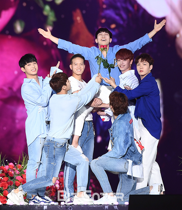 비투비가 2일 오후 서울 구로구 고척 스카이돔에서 열린 ‘케이스타 2018 코리아 뮤직 페스티벌(KSTAR 2018 Korea Music Festival / 이하 ‘2018 코뮤페’)’ 플라워카펫에 참석해 포즈를 취하고 있다.