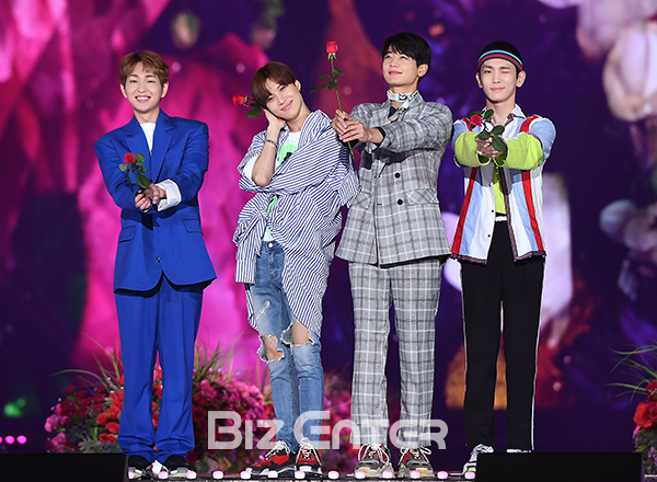 샤이니가 2일 오후 서울 구로구 고척 스카이돔에서 열린 ‘케이스타 2018 코리아 뮤직 페스티벌(KSTAR 2018 Korea Music Festival / 이하 ‘2018 코뮤페’)’ 플라워카펫에 참석해 포즈를 취하고 있다.