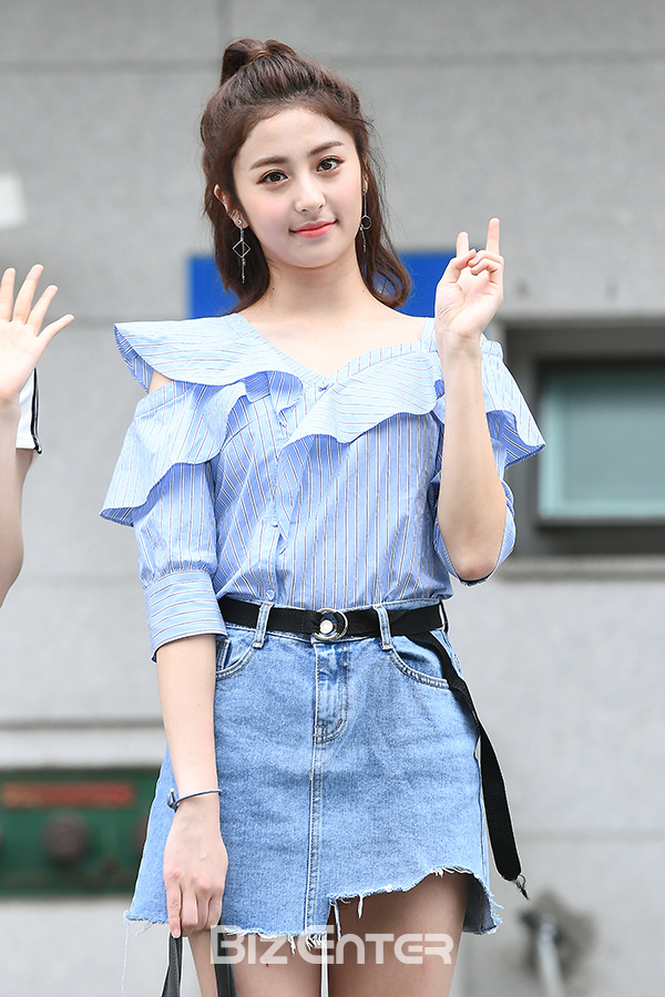 플레디스 허윤진 연습생이 5일 오전 인천 부평구 인천삼산월드체육관에서 열린 Mnet ‘프로듀스 48’(연출 안준영) 콘셉트 평가 녹화에 참석하기 위해 들어서고 있다.