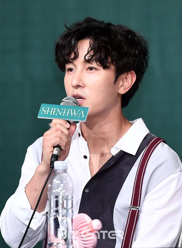 신화 김동완이 28일 오후 서울 영등포 타임스퀘어 아모리스홀에서 열린 20주년 스페셜 앨범 ‘하트(HEART)' 발매 기자간담회에 참석해 질문에 답하고 있다.