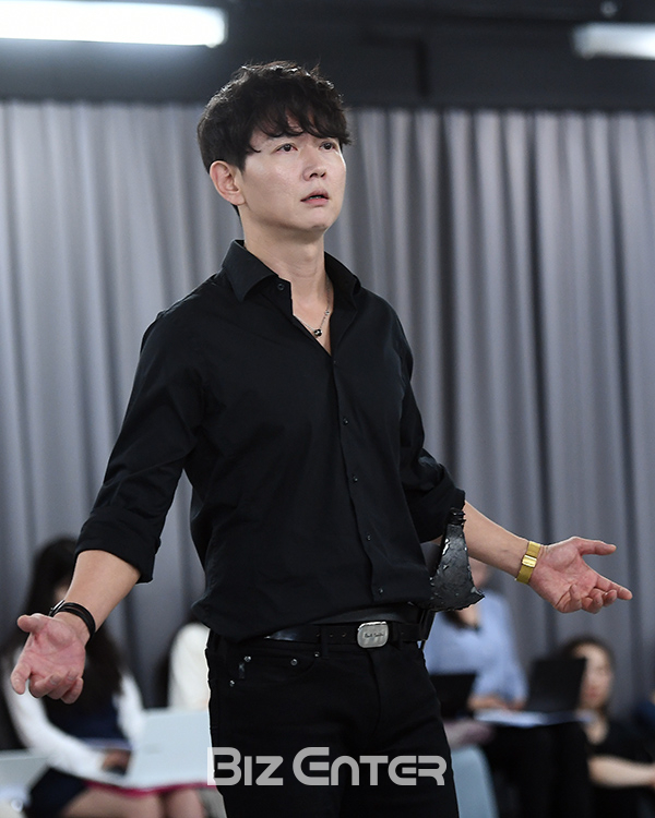 배우 이건명이 29일 오후 서울 강남구 광림아트센터 BBCH홀에서 열린 뮤지컬 ‘아이언 마스크’ 연습실 현장공개에 참석해 극 중 한 장면을 선보이고 있다.