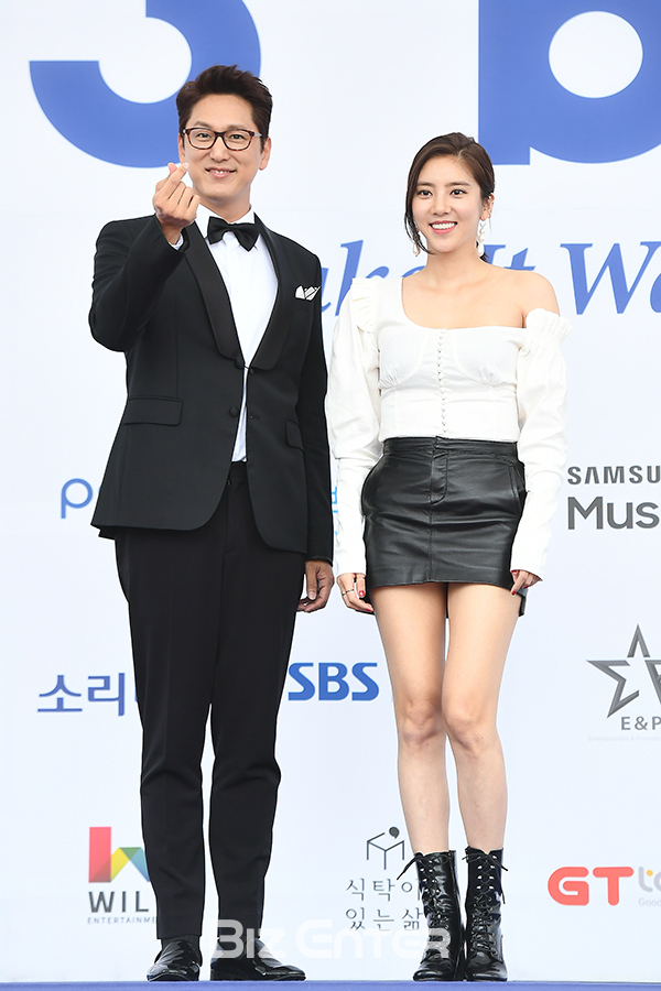 방송인 한석준, 배우 손담비가 30일 오후 서울 송파구 올림픽공원 체조경기장에서 열린 ‘2018 소리바다 베스트 케이뮤직 어워즈’(이하2018 소리바다 어워즈 / 2018 SOBA) 블루카펫에 참석해 포즈를 취하고 있다.