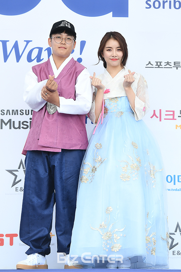중학생 농부 한태웅, 가수 설하윤이 30일 오후 서울 송파구 올림픽공원 체조경기장에서 열린 ‘2018 소리바다 베스트 케이뮤직 어워즈’(이하2018 소리바다 어워즈 / 2018 SOBA) 블루카펫에 참석해 포즈를 취하고 있다.