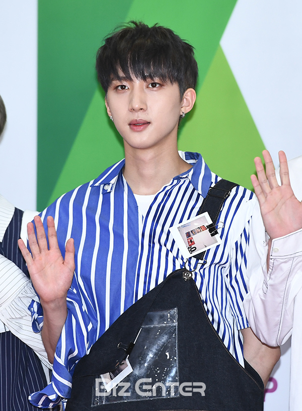 펜타곤 후이가 1일 오후 인천 미추홀구 인천문학경기장 주경기장에서 열린 ‘2018 인천한류관광 콘서트’(INCHEON K-POP CONCERT 2018, 이하 ‘INK콘서트’) 포토월에 참석해 포즈를 취하고 있다.