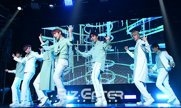 블랑세븐(BLANC7)이 3일 오후 서울 마포구 홍대 무브홀에서 열린 세 번째 앨범 ‘테이크 오프(TAKE OFF)’ 발매 쇼케이스에서 무대를 선보이고 있다.