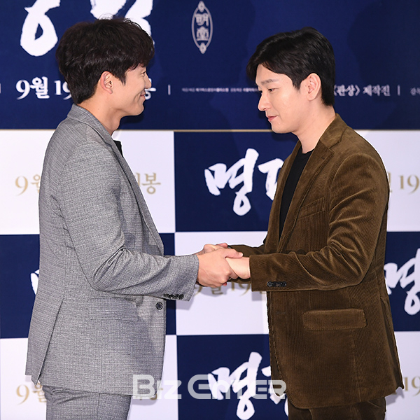 배우 지성, 조승우가 11일 오후 서울 강남구 메가박스 코엑스에서 열린 영화 ‘명당’(감독 박희곤) 언론시사회에 참석해 포즈를 취하고 있다.