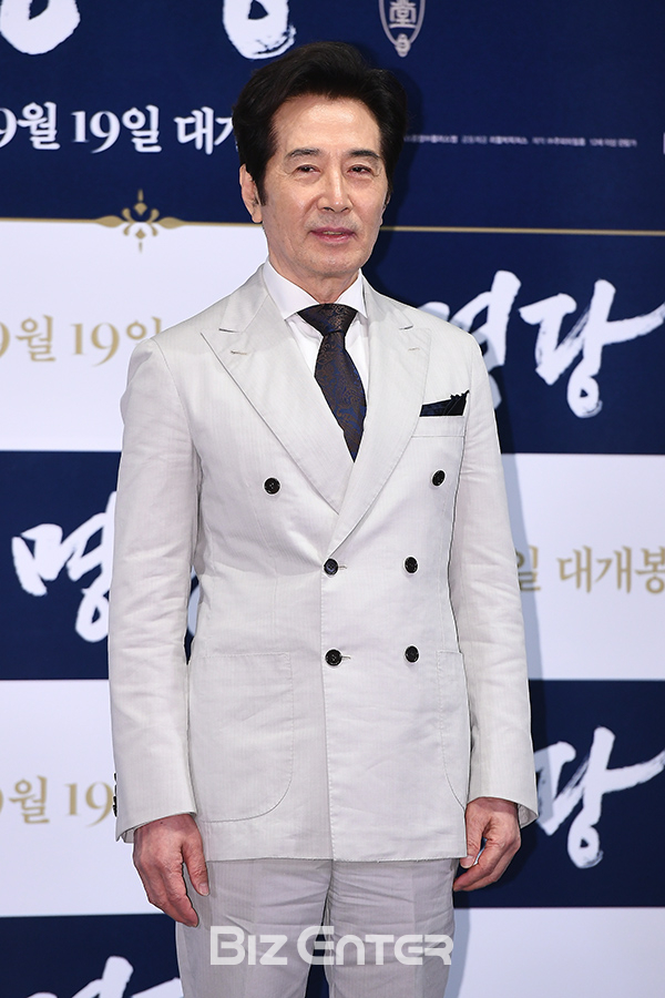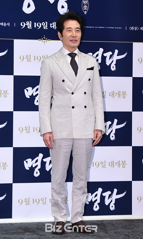 배우 백윤식이 11일 오후 서울 강남구 메가박스 코엑스에서 열린 영화 ‘명당’(감독 박희곤) 언론시사회에 참석해 포즈를 취하고 있다.