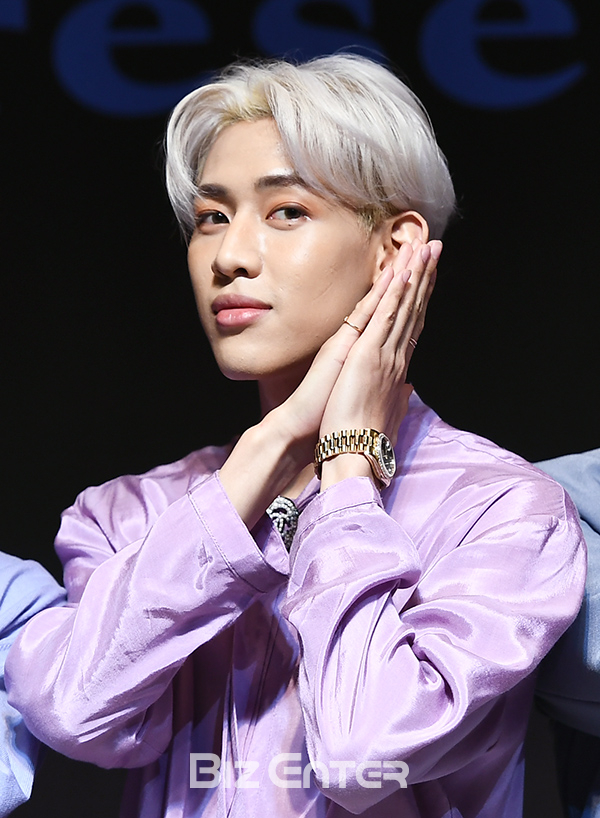 갓세븐(GOT7) 뱀뱀이 17일 오후 서울 강남구 JW메리어트호텔서울에서 열린 갓세븐(GOT7) 정규 3집 앨범 ‘프레젠트 : 유(Present : YOU)’ 제작발표회에 참석해 포즈를 취하고 있다.