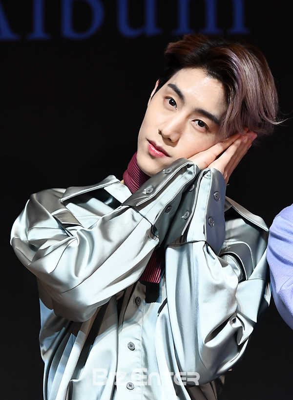 갓세븐(GOT7) 마크가 17일 오후 서울 강남구 JW메리어트호텔서울에서 열린 갓세븐(GOT7) 정규 3집 앨범 ‘프레젠트 : 유(Present : YOU)’ 제작발표회에 참석해 포즈를 취하고 있다.