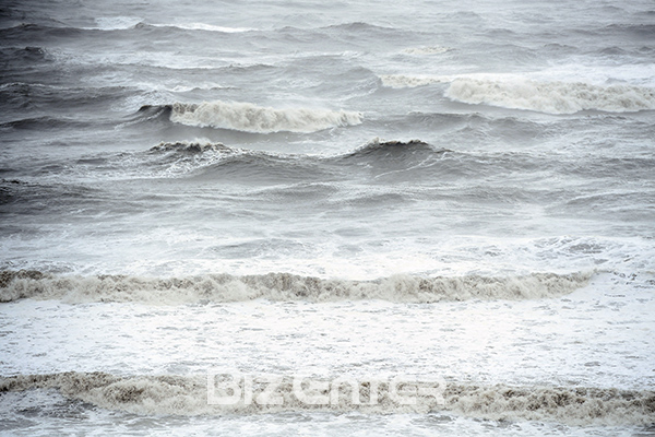 [BZ포토] 부산 태풍 콩레이 잠시 소강상태 '여전히 높은 파도'