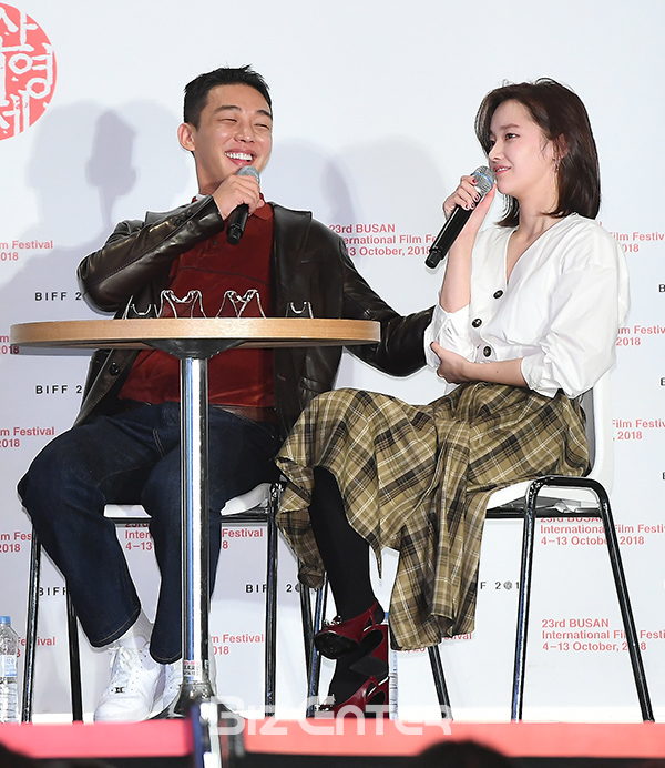 배우 유아인, 전종서가 6일 오후 부산 해운대구 영화의전당 시네마운틴에서 열린 제23회 부산국제영화제(BIFF) ‘버닝’(감독 이창동) 오픈토크에 참석하고 있다.
