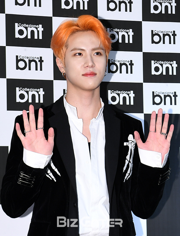 가수 김동한이 12일 오후 서울 중구 롯데백화점 영플라자에서 열린 비앤티 꼴레지오네 팝업스토어 오픈 행사에 참석해 포즈를 취하고 있다.