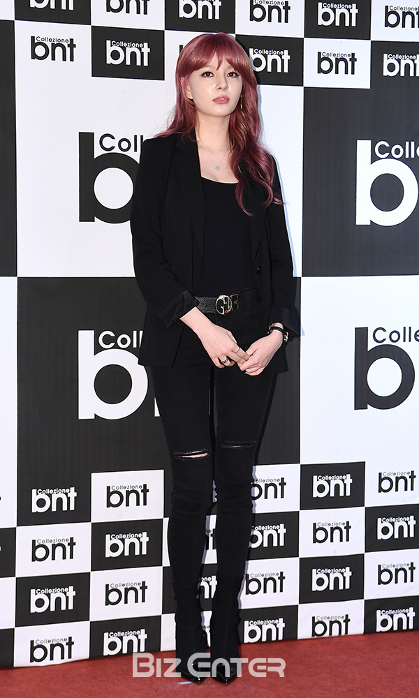 가수 샤넌이 12일 오후 서울 중구 롯데백화점 영플라자에서 열린 비앤티 꼴레지오네 팝업스토어 오픈 행사에 참석해 포즈를 취하고 있다.
