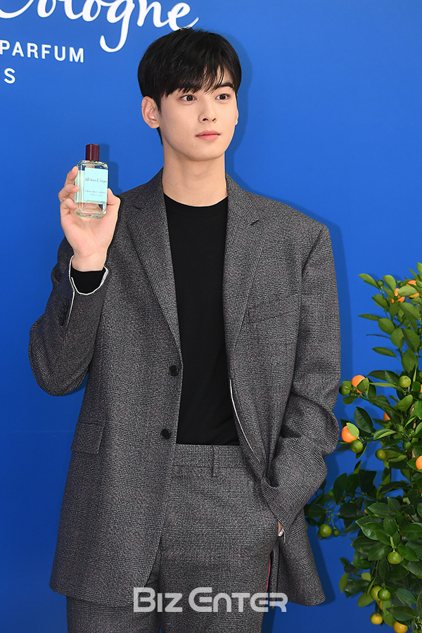 배우 차은우(아스트로)가 19일 오후 서울 강남구 신세계백화점 강남점에서 열린 아틀리에 코롱 행사에 참석하고 있다.